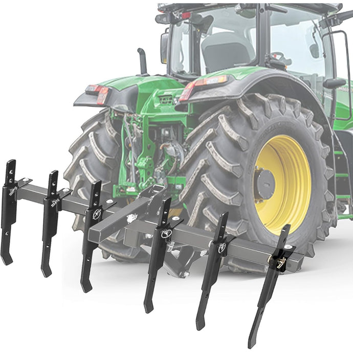 KUAFU ATV/UTV Chisel Plow Scarifier Implement w/ 6 Independently Adjustable Chisels Fit for ATV UTV Most Lawn/Garden Tractors Universal Cultivator Attachments Steel Power Coated