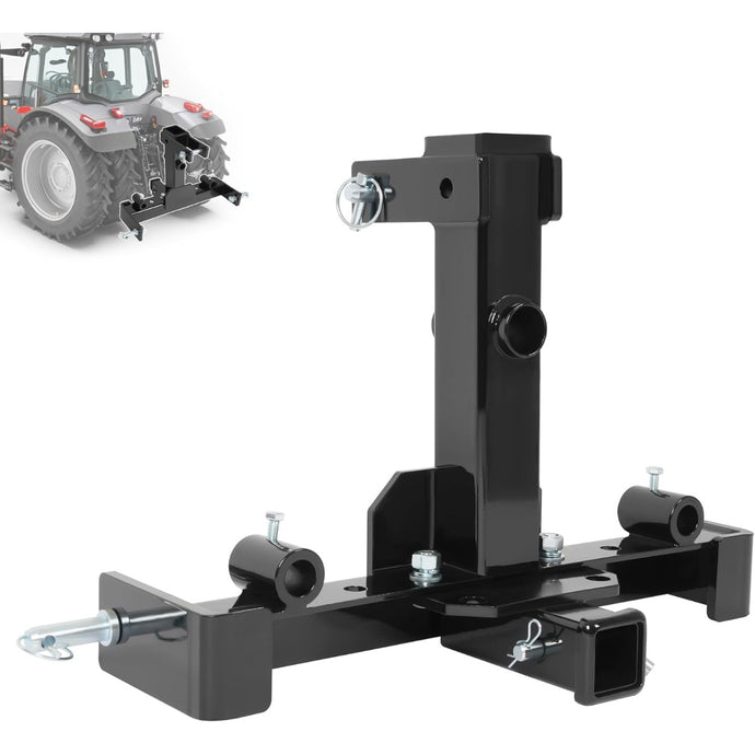 KUAFU 3 Point Hitch Receiver Universal Compatible with Category 1 Tractors Trailer Gooseneck Drawbar Receiver w/Spear Holes Black Steel Powder Coated