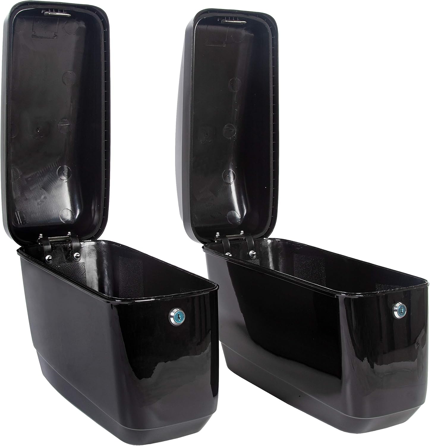 Sold as a pair. The high-quality ABS material ensures the durability of the saddle bag and keeps the cargo dry from being wet by rain.Gloss black finish, adds a unique style to your motorcycle.