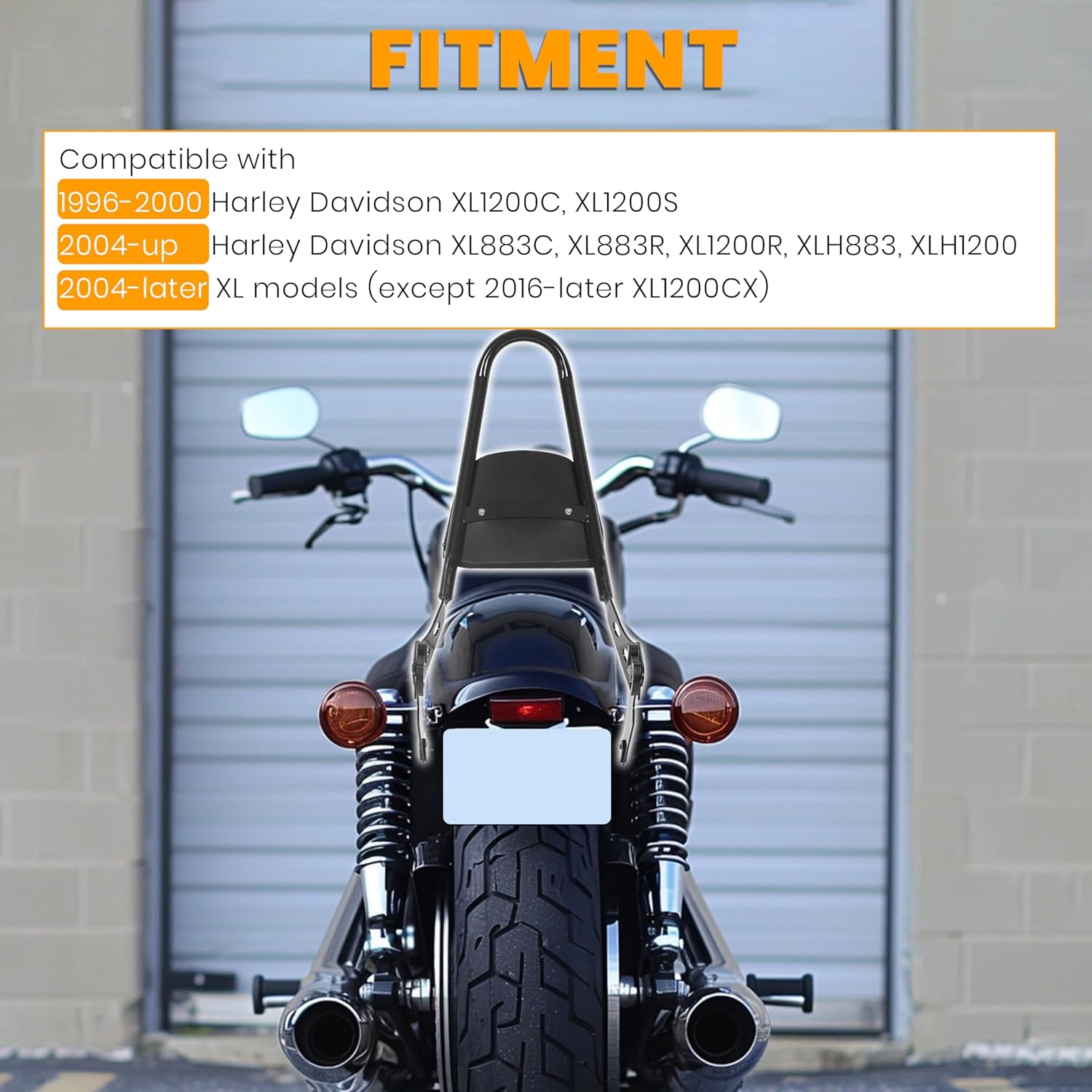 Detachable Sissy Bar Passenger Backrest Compatible with 2004-Up Harley Sportster XL883C 883R XL1200R 1200C 1200S XLH883 XLH1200 Motorcycle Backrest W/Cushion Pad LYHD-31-GB